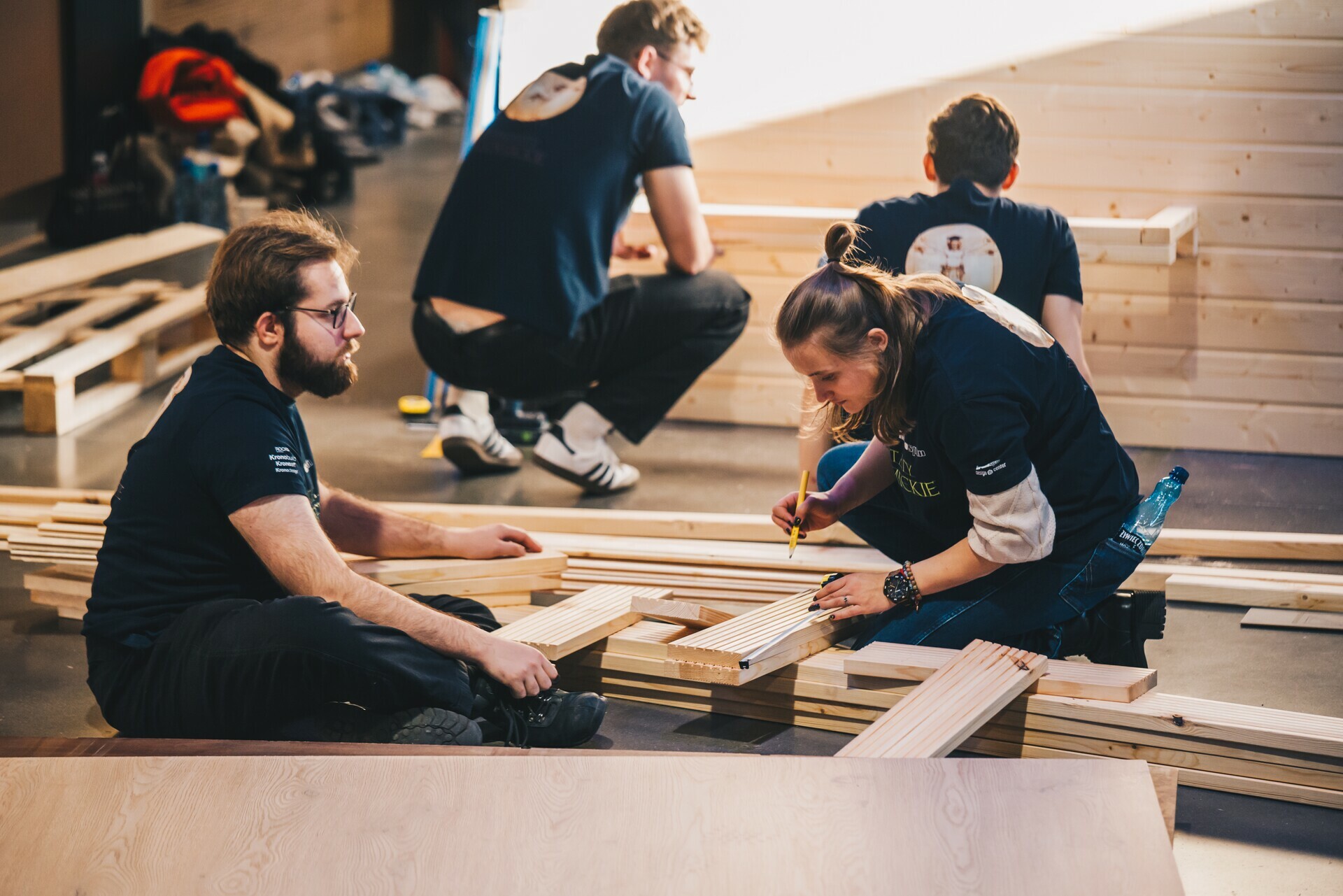Z zapałem projektowali ściany, meble i konstrukcje, które powstawały dosłownie na oczach wszystkich: od płaskiej płyty po mini-wnętrze godne katalogów designerskich. Wkrętarki pracowały jak w rytmie muzyki, a kreatywne pomysły zmieniały się w realne formy szybciej, niż można było to uchwycić aparatem.